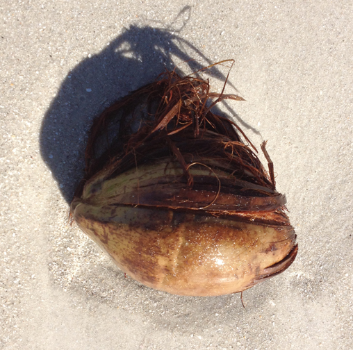 My friend is local to this area and her response to my question surprised me.  “It’s a coconut.  They float you know.  That’s why you find coconut trees in the most remote of places, because they float in the ocean and once their shell is pierced or cracked it’s hard not to grow a coconut tree.”